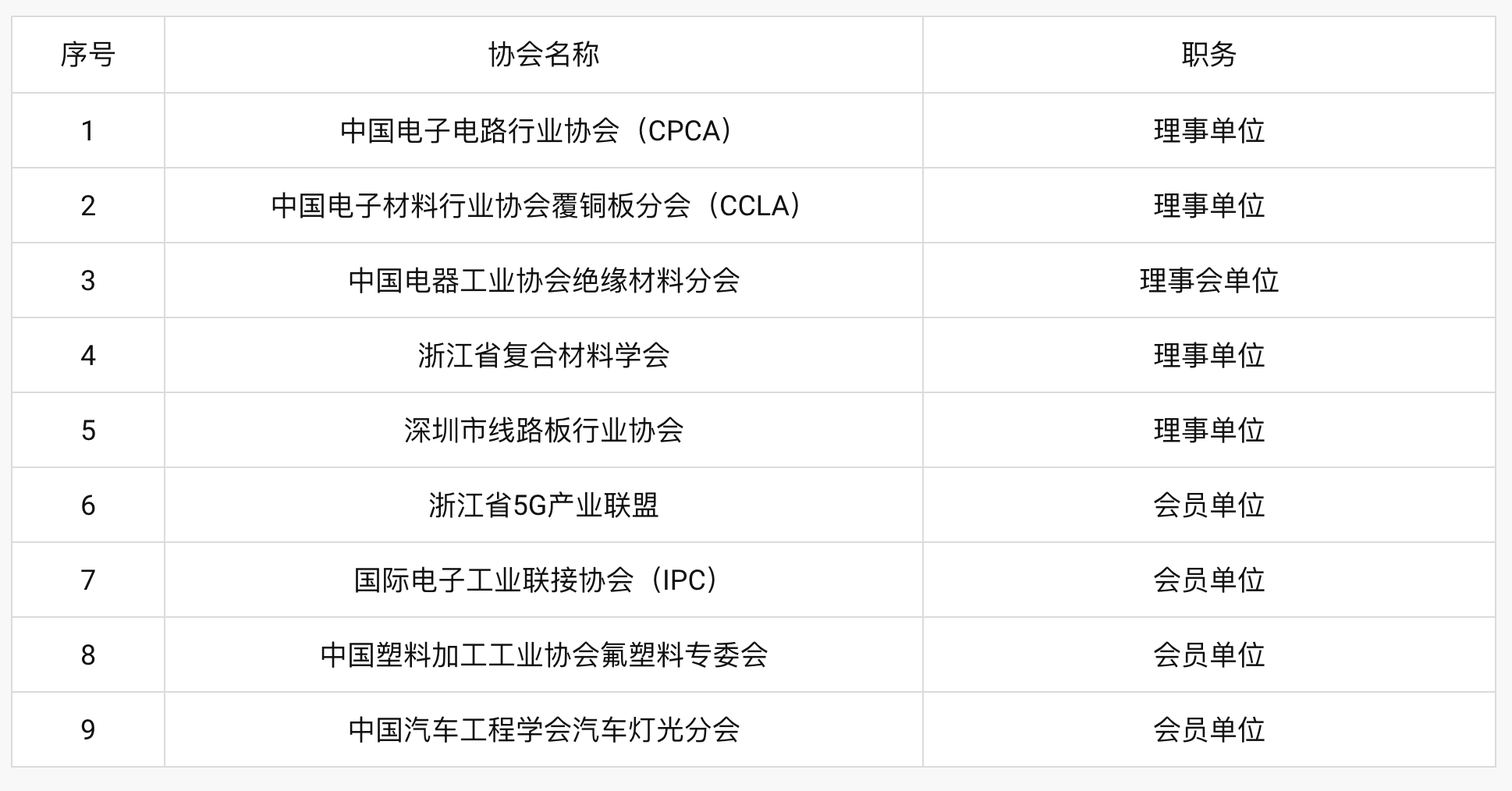 参加行业协会情况一览表